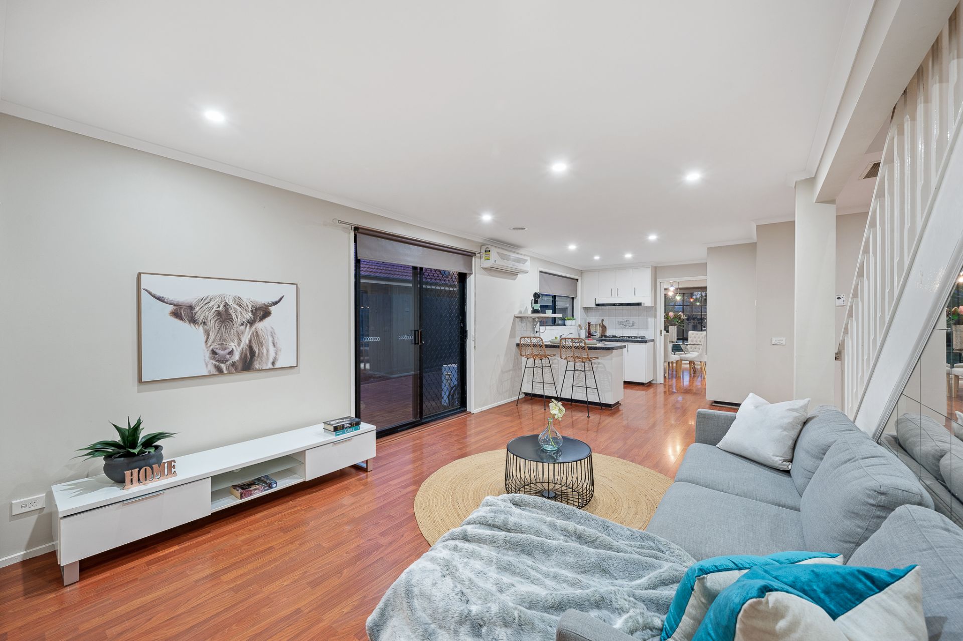 Upstairs it has a master bedroom with an ensuite and walk-in wardrobe, alongside additional well-appointed bedrooms sharing a contemporary bathroom.