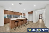 The ground floor features a flexible front living/theatre room, a guest bedroom with walk-in wardrobe and ensuite, a powder room, large laundry with dual access, and internal entry to the double garage. At the heart of the home is the impressive entertainer's kitchen with stone benchtops, a walk-in butler's pantry, and a generous island bench, flowing into open-plan living and dining areas with dual access to the undercover alfresco and low-maintenance backyard.
