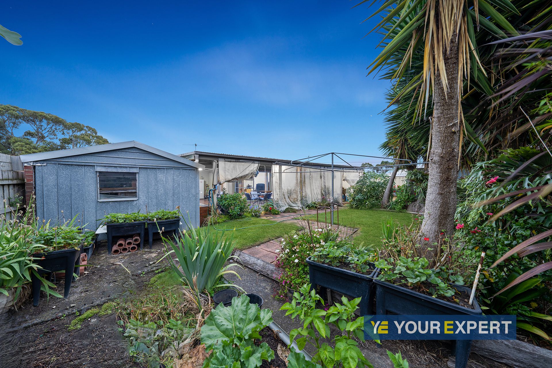 The property features a fenced front yard with a secure gate, ensuring both privacy and safety. Additionally, a large shed is conveniently located on the block, providing extra storage or potential for a workshop.