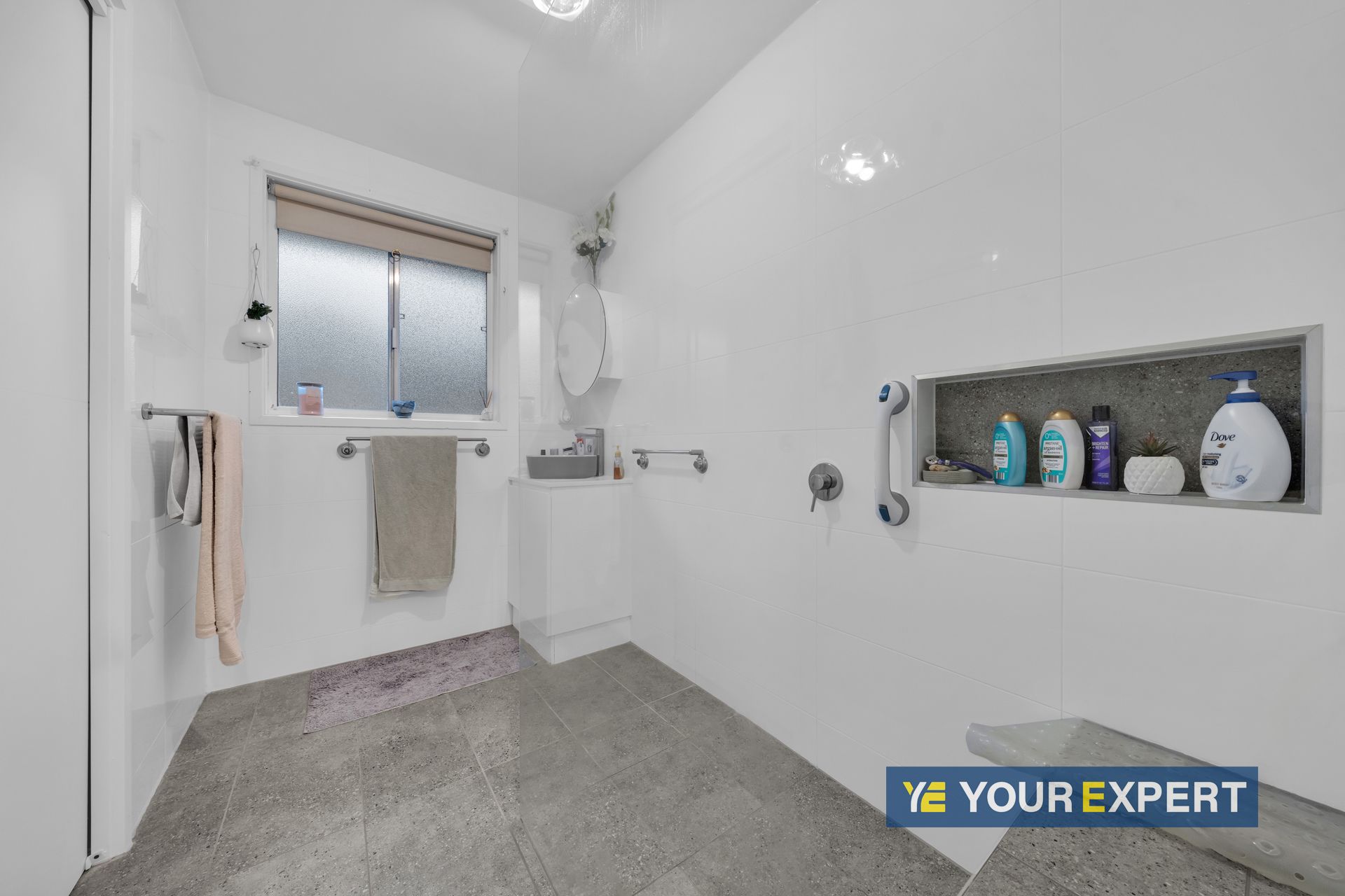 - Renovated bathroom features frameless shower, vanity and separate toilet