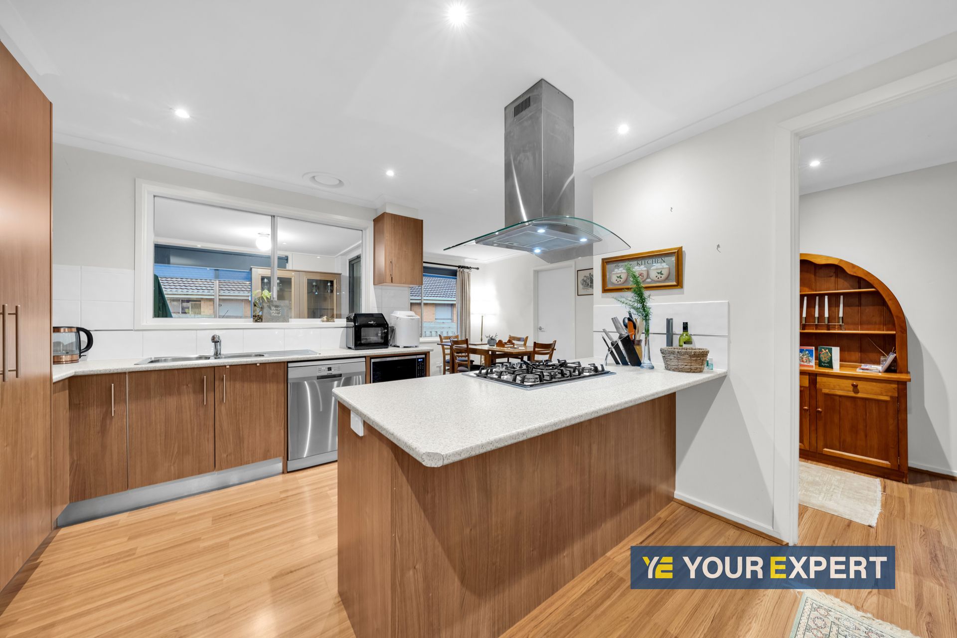 - Spacious and functional kitchen features quality appliances including gas cooktop, rangehood, oven, dishwasher, and ample pantry & cupboard space for storage