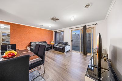 At the heart of the home lies an impressive open-plan living and dining area, meticulously designed to encourage family interaction and seamless entertaining. Enhanced by abundant natural light and contemporary finishes throughout, this central living space effortlessly connects to the outdoor area, creating a seamless indoor-outdoor flow ideal for entertaining or relaxing.
