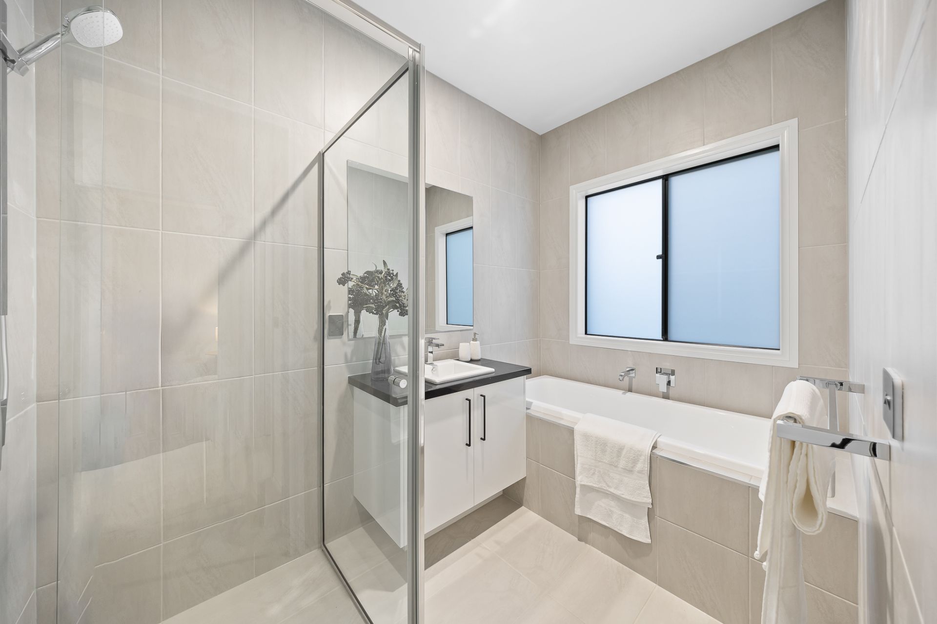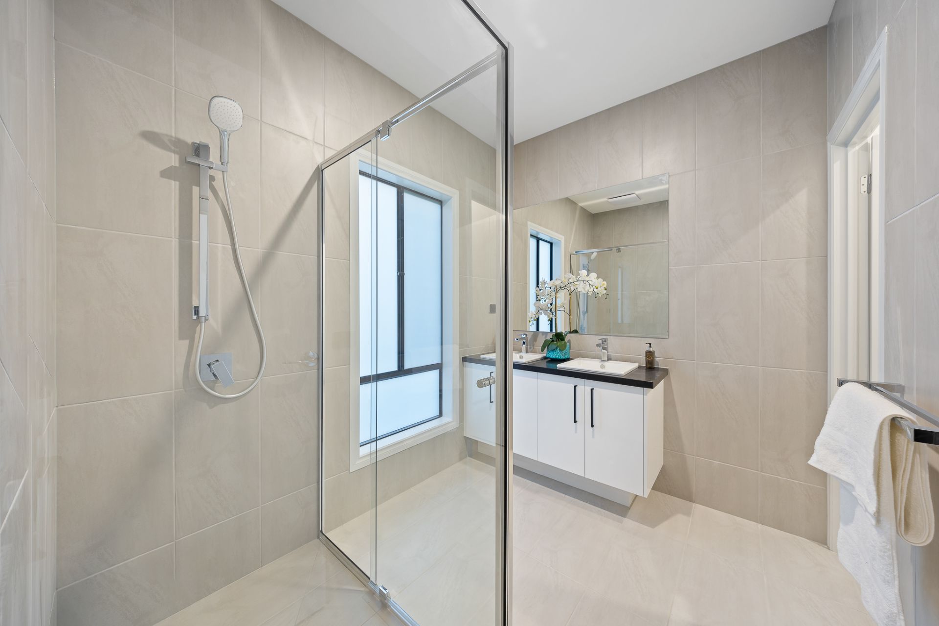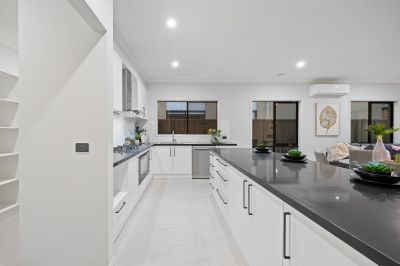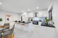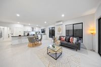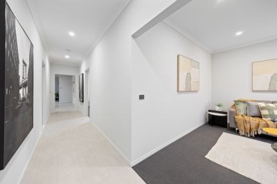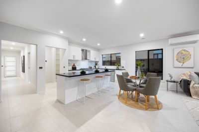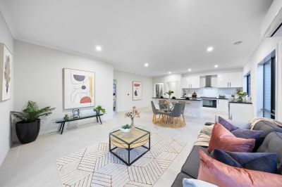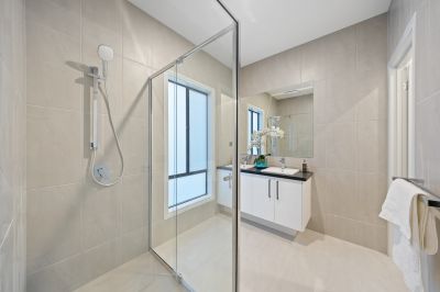 This newly built home features four bedrooms, two bathrooms, a powder room, and a double car garage. Upon entering, you are welcomed by a wide entrance and a generously sized master bedroom, complete with a walk-in robe and luxurious ensuite, setting the stage for the impeccable design found throughout the home.
