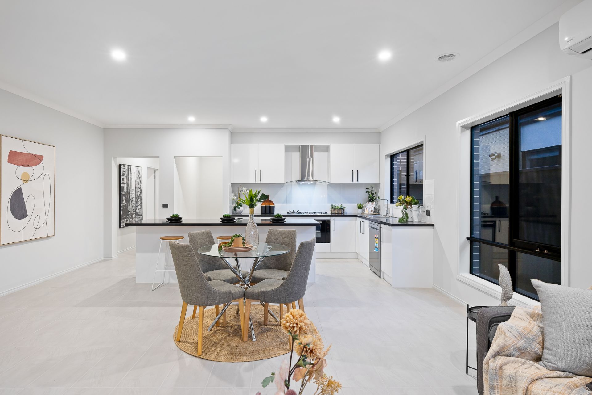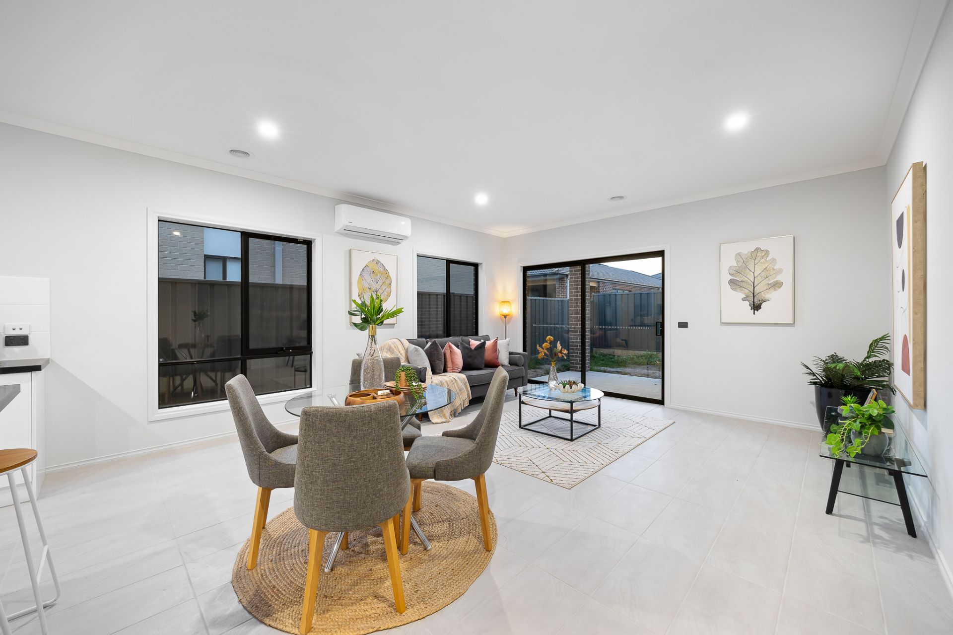 A spacious lounge area and open-plan kitchen seamlessly transition to low-maintenance garden, creating an idyllic setting for relaxation and entertainment.