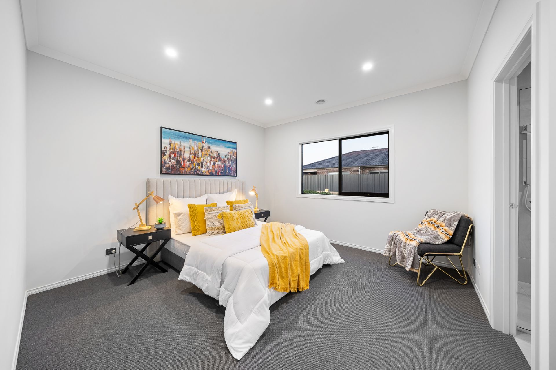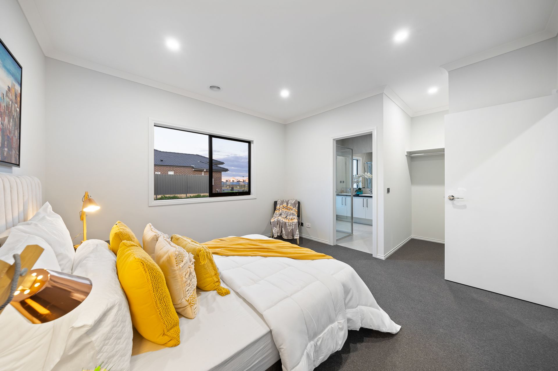 Master bedroom featuring an ensuite and walk-in robe