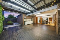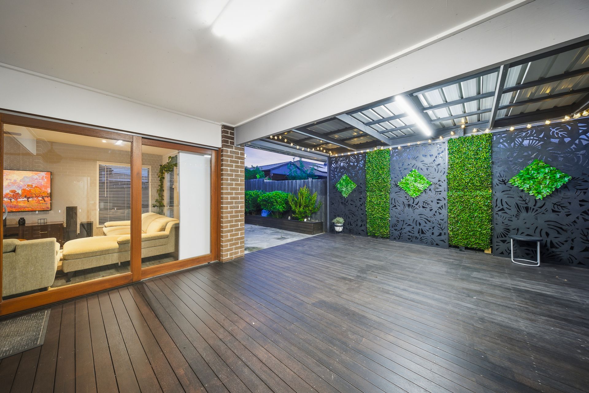 Sliding doors open to the decked alfresco, fully equipped with a built-in kitchenette featuring hot and cold water – perfect for entertaining in style. The space extends naturally to the rear yard, providing a private haven for family gatherings and outdoor dining.