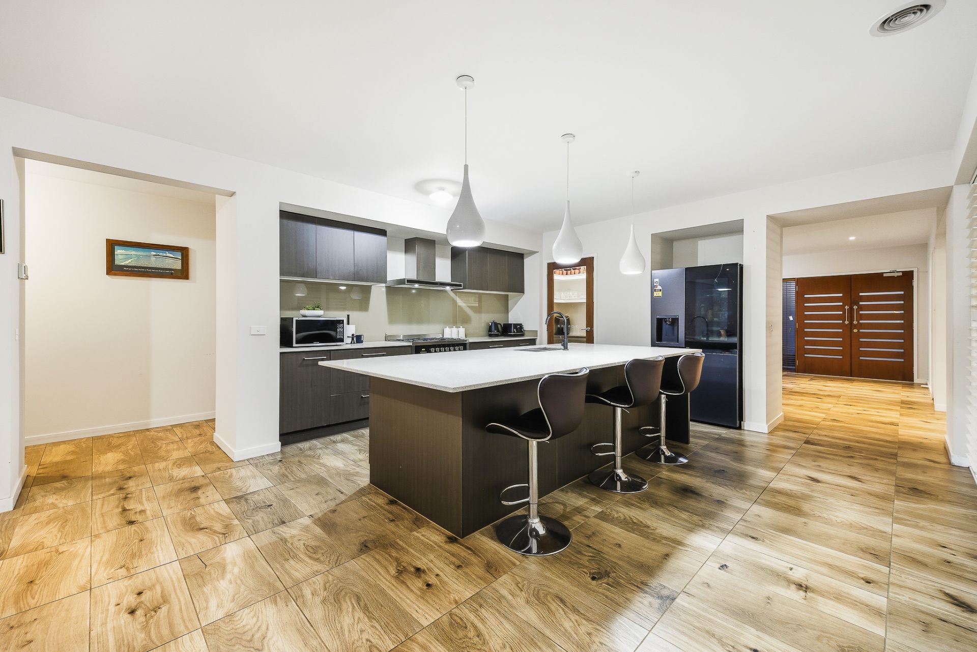 A formal lounge room at the front provides a quiet escape and can easily be transformed into a private theatre space. The expansive open-plan living and dining areas offer a warm, inviting heart to the home.