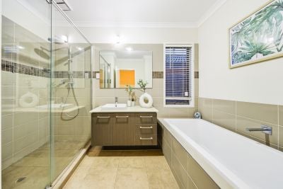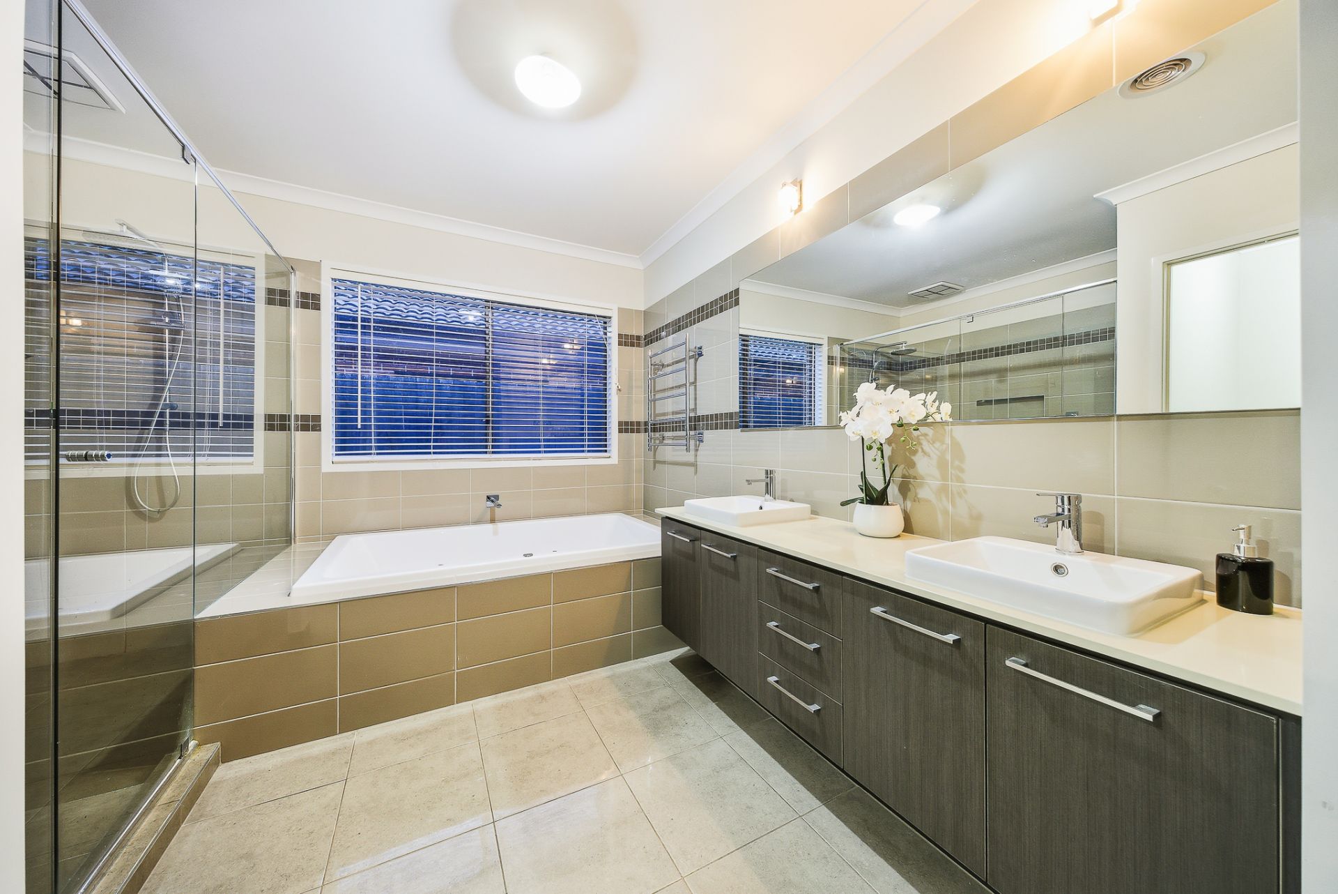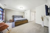 The master suite is a true retreat featuring a luxurious ensuite with spa bathtub, dual vanities and a walk-in dressing area. Additional bedrooms all feature built-in robes and are serviced by a stylish main bathroom and separate powder room. Split-system air conditioning in the master and bedroom 4, plus central heating and evaporative cooling throughout for year-round comfort.