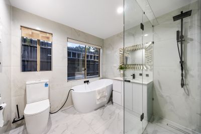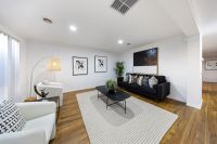 The oversized rumpus/family room at the rear of the home provides the perfect space for relaxation, offering ample room for everyone to unwind. The master bedroom features a walk-in robe and a luxurious ensuite, while the remaining bedrooms and a study are located on the right side of the home, are generously sized and serviced by a modern main bathroom.