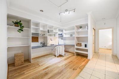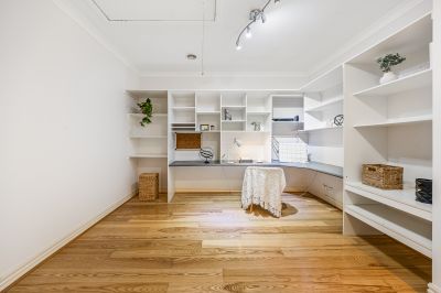 • Large study or office area with built in shelving and work desks