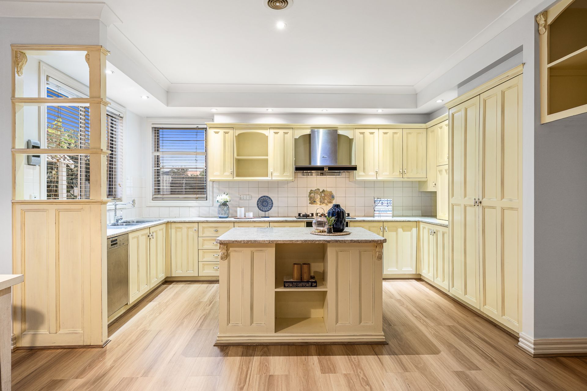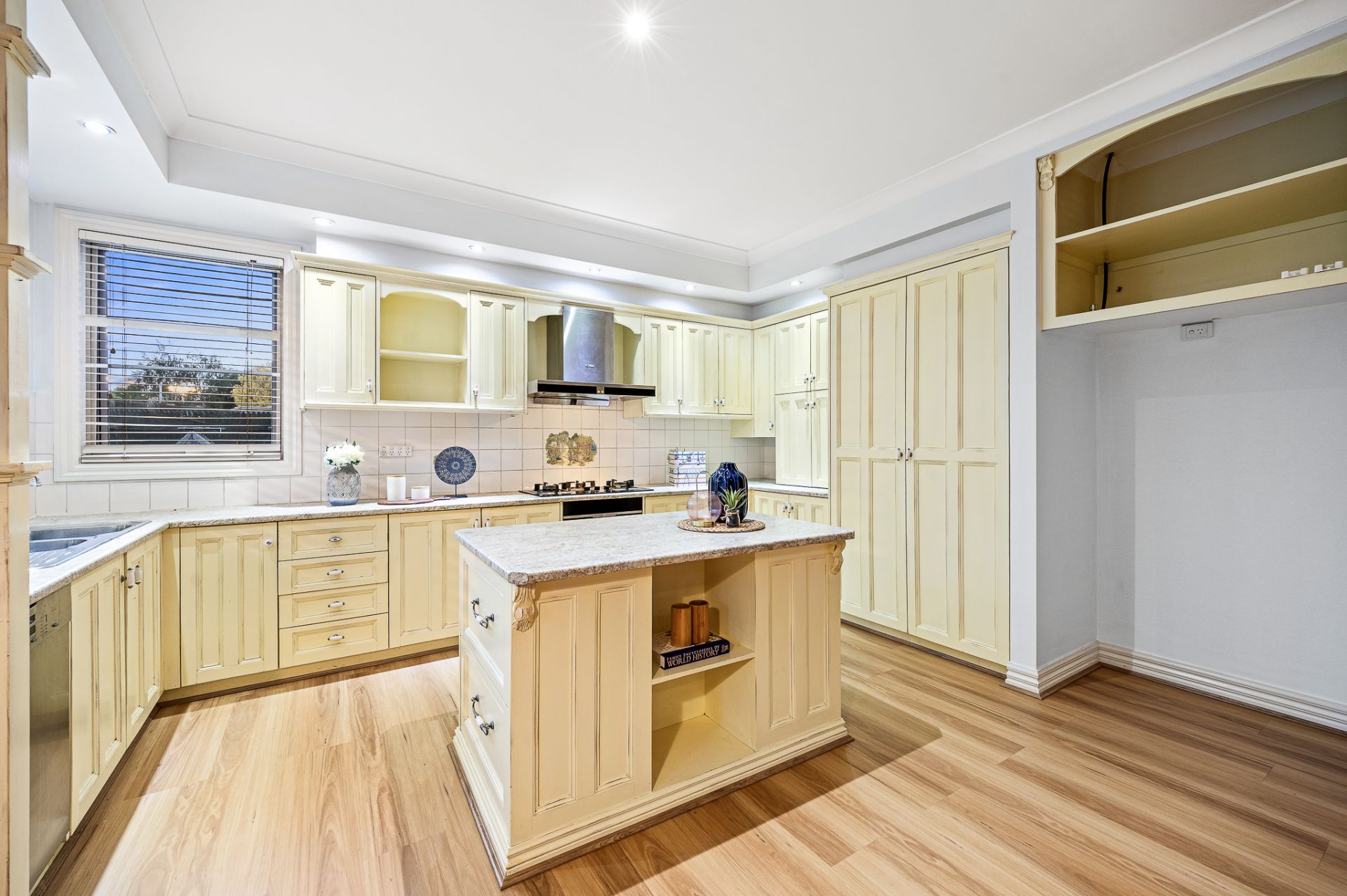• Spacious kitchen with quality appliances, Mile dishwasher, gas cook top,900mm kitchen hang hood, generous size pantry, plenty of drawers, cupboards for extra storage and Island bench.