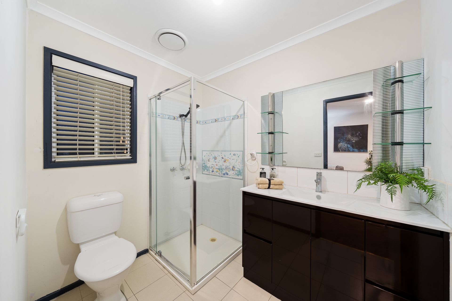 • Centrally located main bathroom upstairs features a shower, vanity and toilet