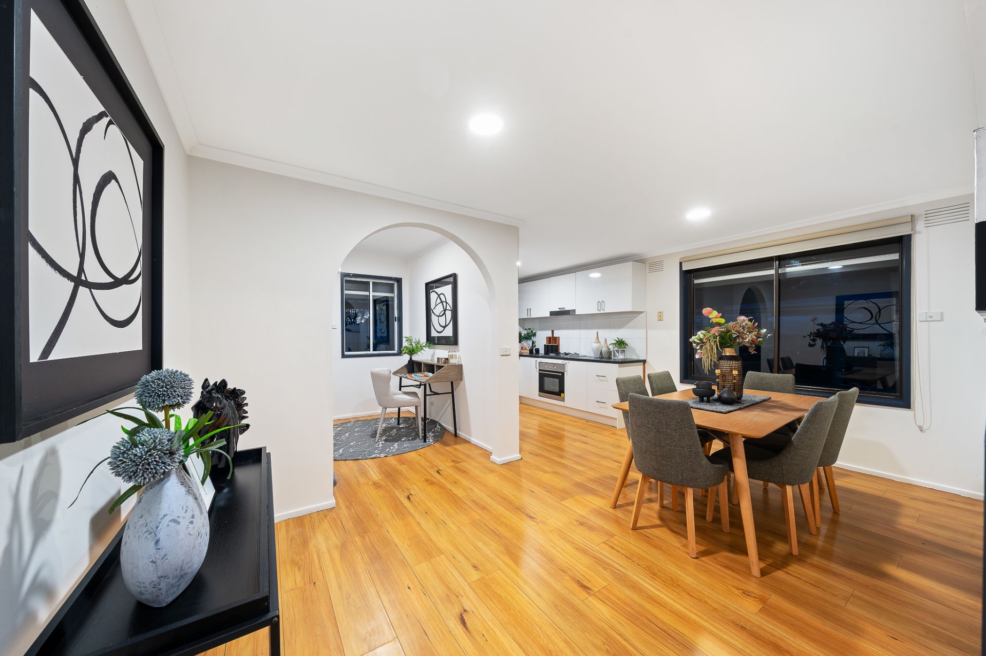 • Spacious kitchen features quality appliances, including a Gas cooktop, Oven, rangehood, and ample pantry & cupboard space for storage