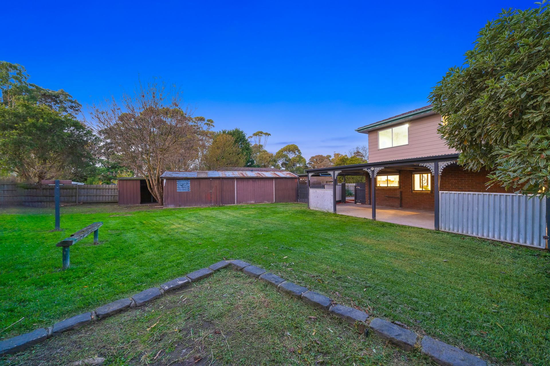 • Low maintenance backyard features plenty of grass space for kids & furry friends to run around & play