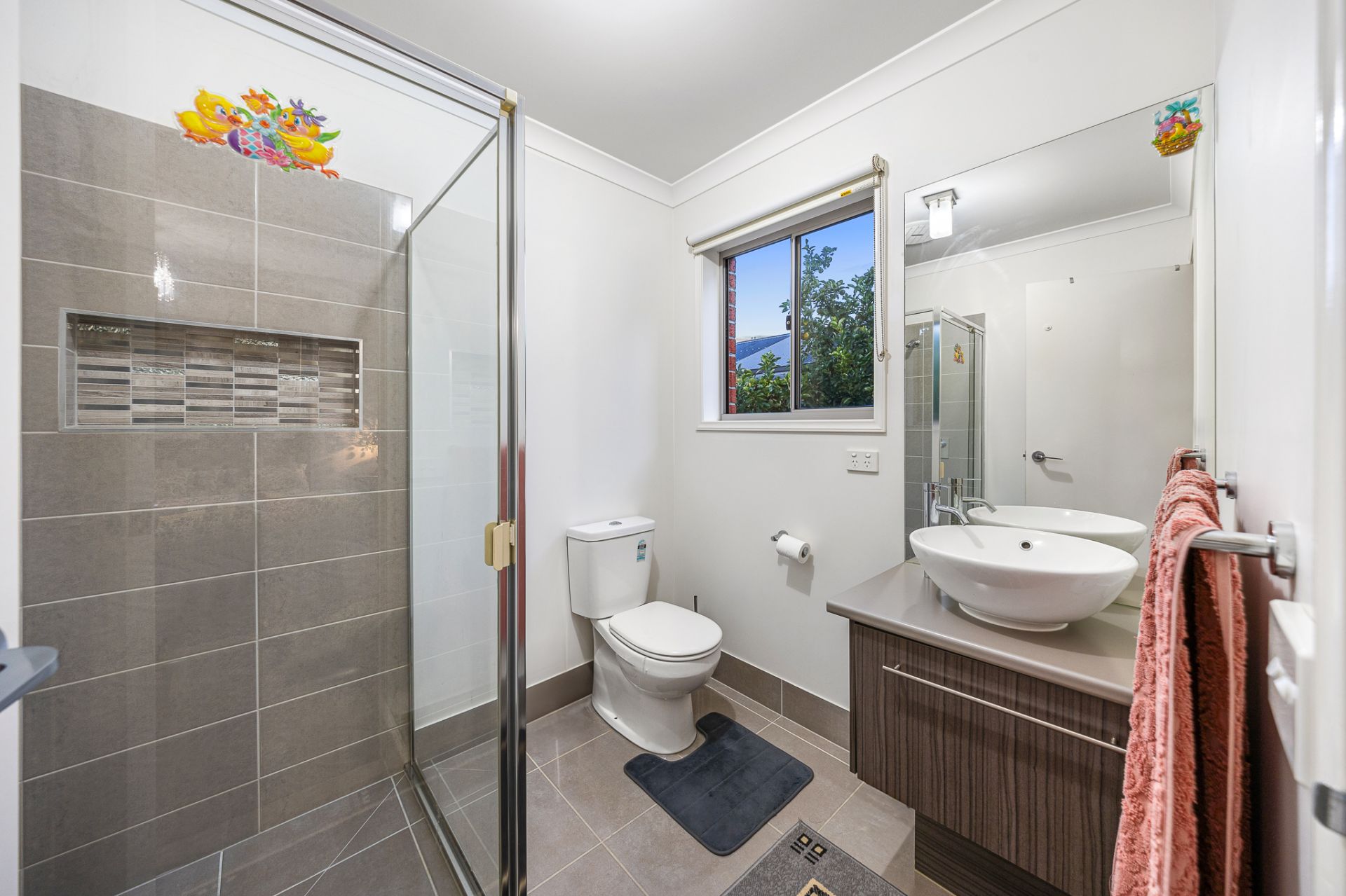- Two master bedrooms featuring walk in robes and ensuite with a vanity,