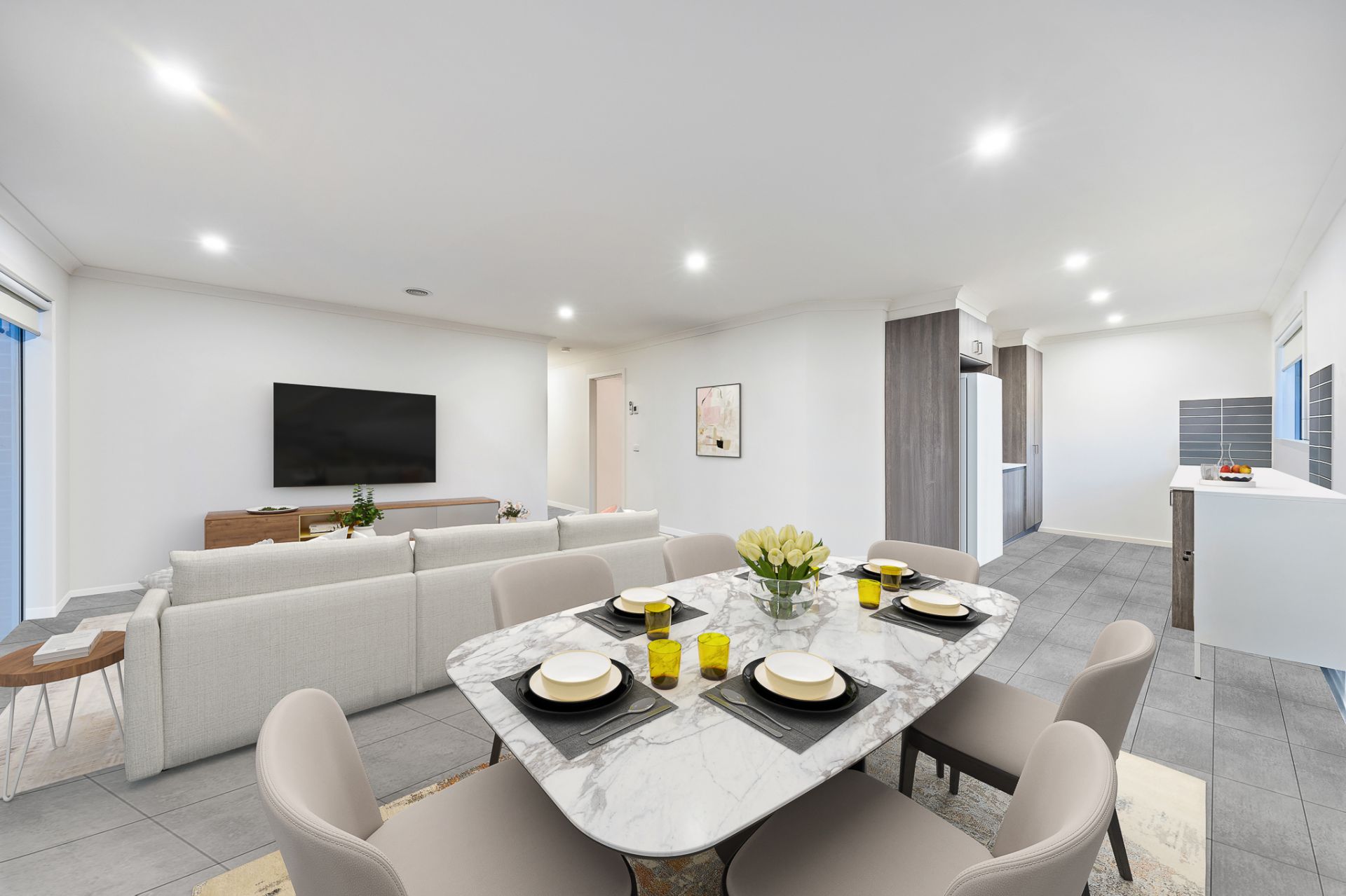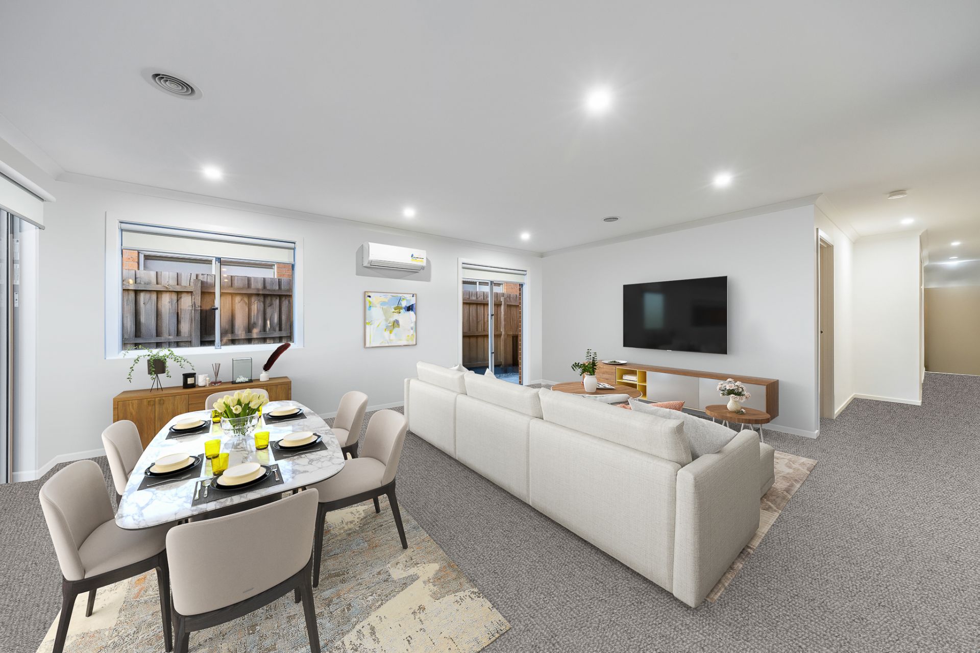 • Open-plan living and dining area with plenty of natural light.