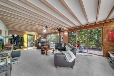 Set back from the road at the end of a quiet, meandering driveway, the home enjoys a private and serene setting surrounded by natural bushland, open grassed areas, and an abundance of native wildlife - including kangaroos, wallabies, and wombats.